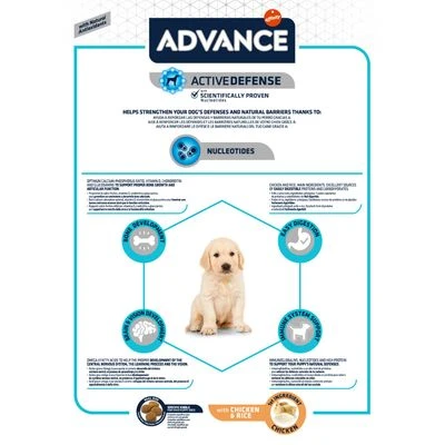 Advance Maxi Puppy Protect is a high quality food especially for large breed puppies (2 to 12 months) (over 30 kg. adult weight).