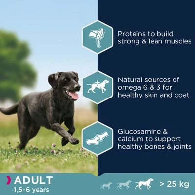 - 100% balanced and complete: all-round recipe tailored to meet the nutritional needs of large breeds (25-40kg) and extra large breeds (>40kg)