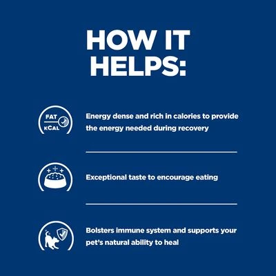 - Specifically developed to help your pet recover after surgery or following a bout of anorexia or other illness