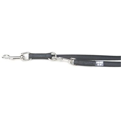 JULIUS-K9® dog lead that adjusts to 3 different lengths. The smart V-lead has 2 carabiner hooks and the rubberised material gives you the perfect grip, even in wet weather.