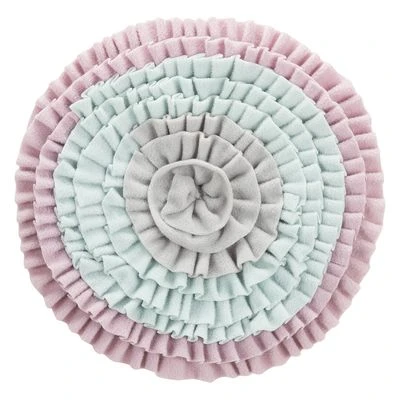 Circular mat for puppies and kittens, with ruffles for hiding treats, removable plastic panel for increased stability, for playing and relaxing, made of polyester